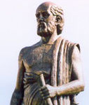 Aristotle proposes an Earth-centered universe in which the Earth is stationary and the cosmos (or universe) is finite in extent but infinite in time