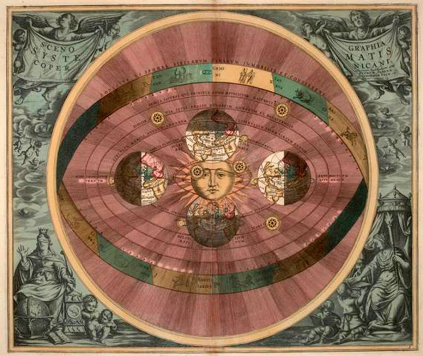 1543 - HeliocentrismNocolaus Copernicus hypothesized that the Sun is the center of planetary motion (including Earth) in his book 'On the revolution of heavenly spheres'. Copernicus still envisioned the solar system as a set of nested spheres that contain the moving celestial bodies. There was little still knowledge about what the Sun, moon, planets, and stars actually are. Heliocentrism is a much simpler model of celestial motions than that of Geocentrism. Visual comparisons | center of motion | motions of planets |
