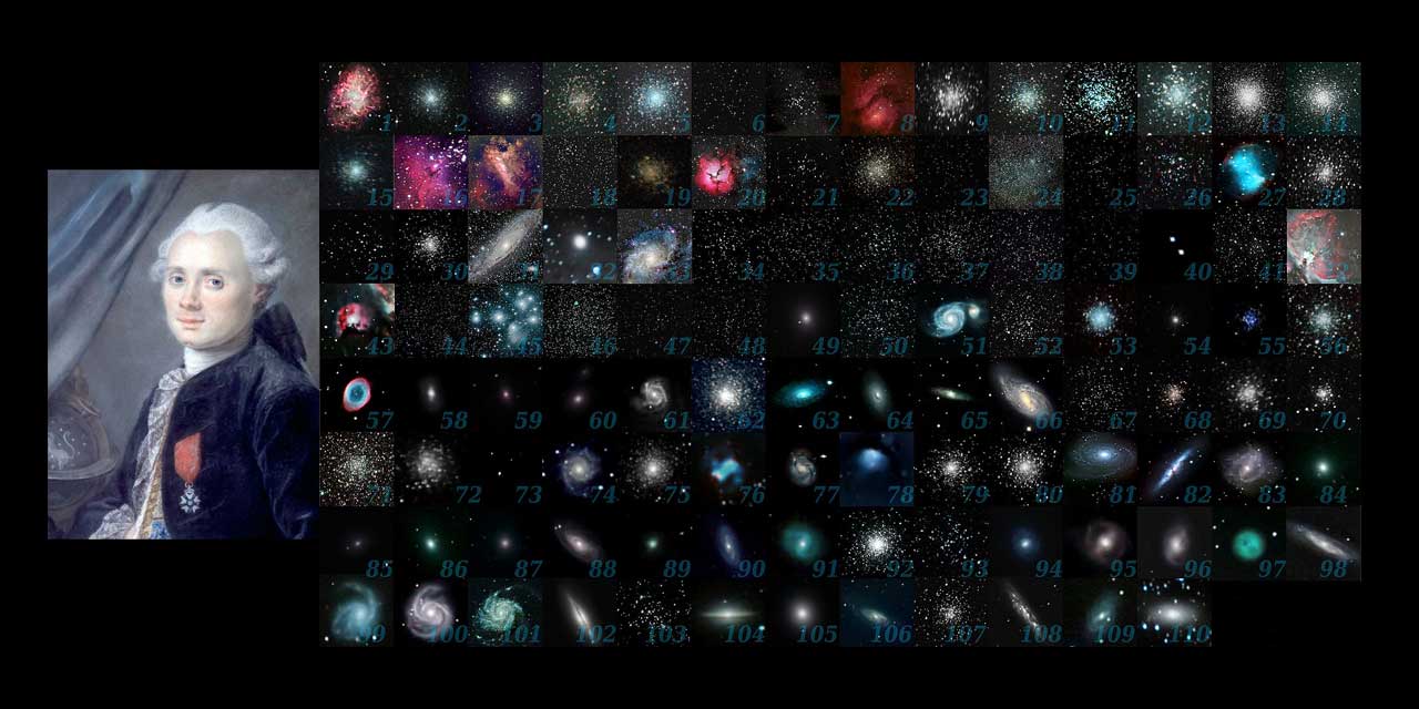 Charles Messier, a comet hunter, collected a list of deep-sky objects that irritated him. These Messier objects are not comets, therefore he didn't want to waste time with them. Many of these objects were just swirls of light, like ghostly pinwheels in the night sky. We know now that this object list includes 5 kinds of deep-sky objects: interstellar nebulae, planetary nebulae, open star clusters, globular clusters, and galaxies.
